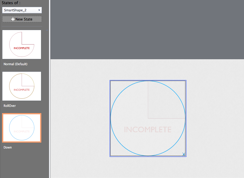 To get the button to look differently in different state views, you can experiment with opacity and stroke color, or you can import different colored images from PowerPoint.