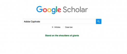 Use Google Scholar to search for research studies that chose to use Adobe Captivate to build the assessment instruments.